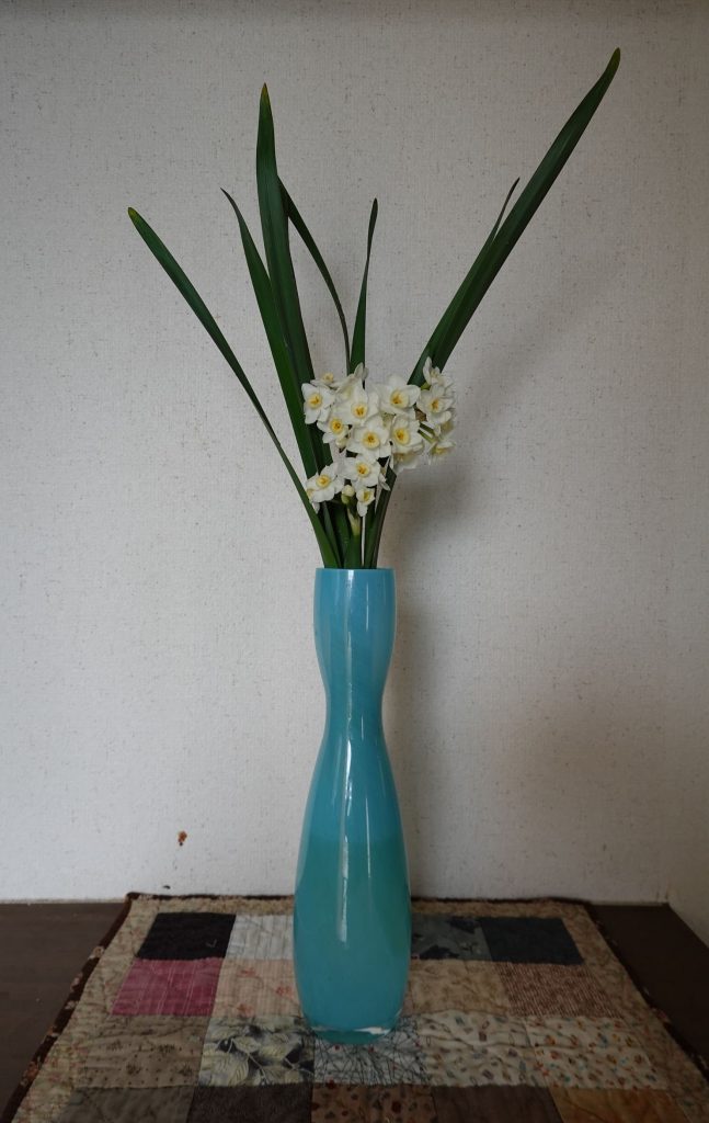 玄関に飾ってあったお雛様を片付けて、摘んだ水仙を飾ってみました。生け花の素養はないのでテキトーです。