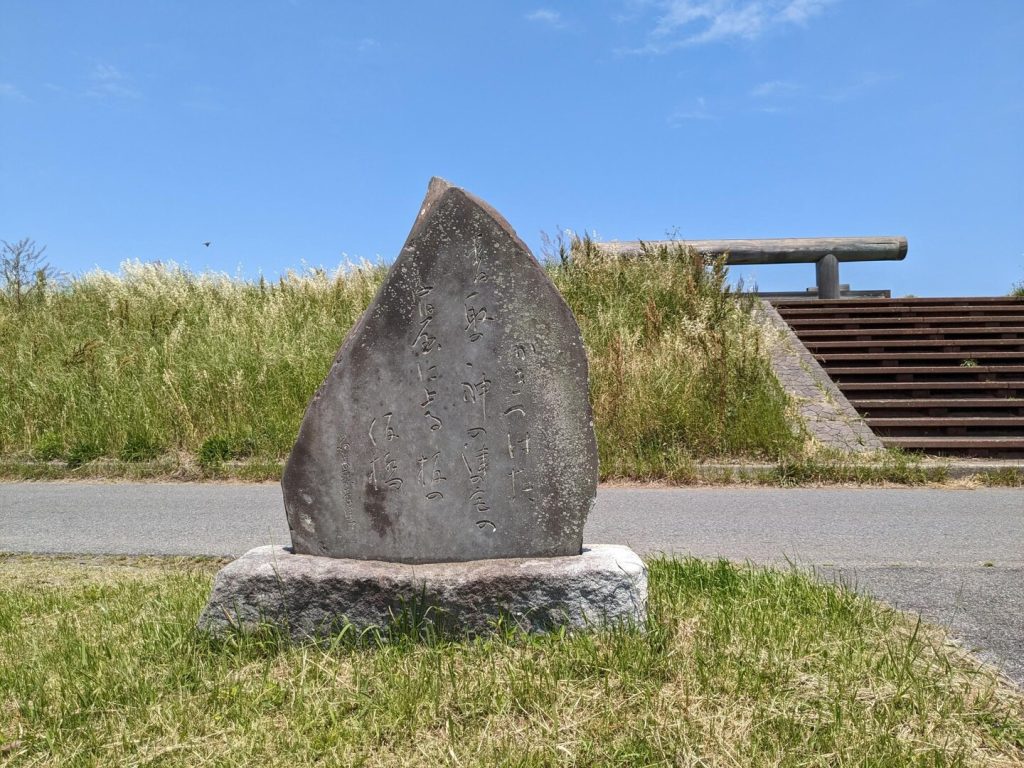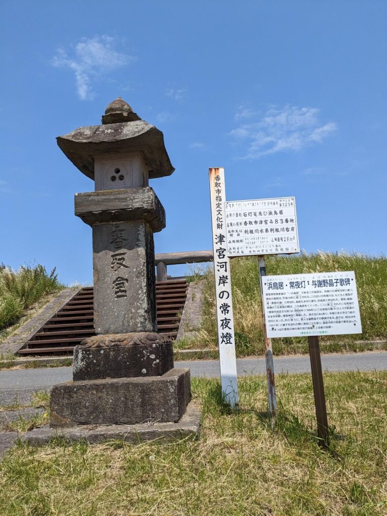 歩くこと 20 分、「香取神宮一の鳥居」に到着した。かつて「香取神宮」の表参道口だったところで「津宮鳥居河岸」と呼ばれる。昔はここで船を降り、香取神宮まで歩いたのだ。「常夜灯」が残っており、そばに「与謝野晶子の歌碑」が立っていた。
