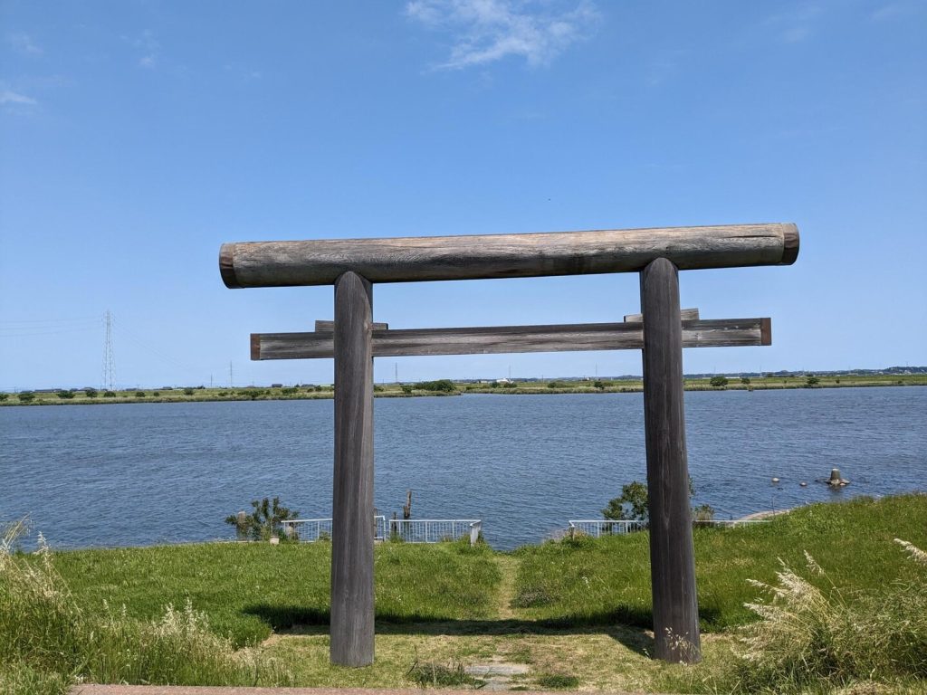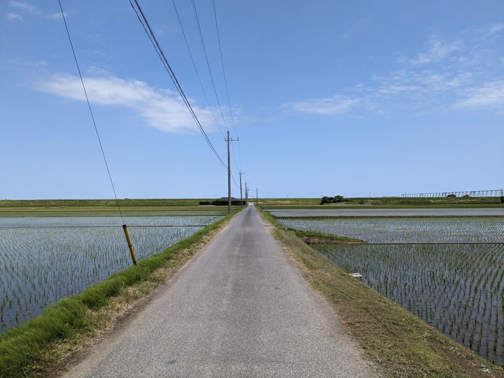 ここで利根川の土手へと向かうべく、国道を右折した。土手に「香取神宮一の鳥居」があるので、そこへ寄っていこうと思ったのだ。道の両側は水田、いにしえの「香取海」の中である。