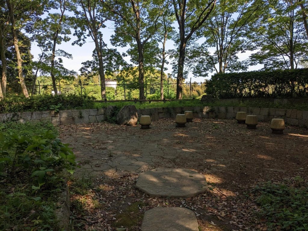 階段を上っていくと山頂部分に明治時代に個人の別荘として建てられた「清風荘」があり、その先に「天満宮」がある。ここは古墳(城山 13 号古墳)だ。この一帯は「城山古墳群」として有名で、造られたのは古墳時代後期~終末期の 6 世紀~ 7 世紀前半頃とされている。城山 1 号古墳からは下総で唯一、中国製の「三角縁神獣鏡」が発見されるなど、多数の副葬品が出土しており、畿内政権と深い関係があったものと推測され、当時この地を支配していた「下海上国造(しもつうなかみのくにみやつこ)」との関係が指摘されているとのことだ。
