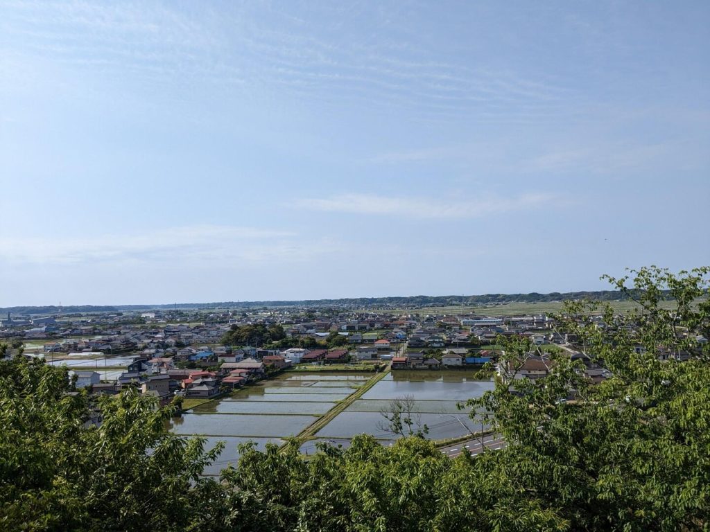 山頂からの眺めである。田園風景がずっと広がっているが、古代には海だったところだ。広大な眺めである。