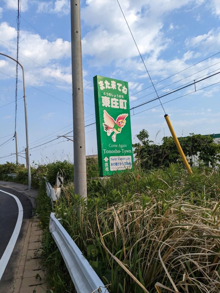 しばらく歩くと、「また来てね東庄町」の看板があった。ここから「香取市」だ。