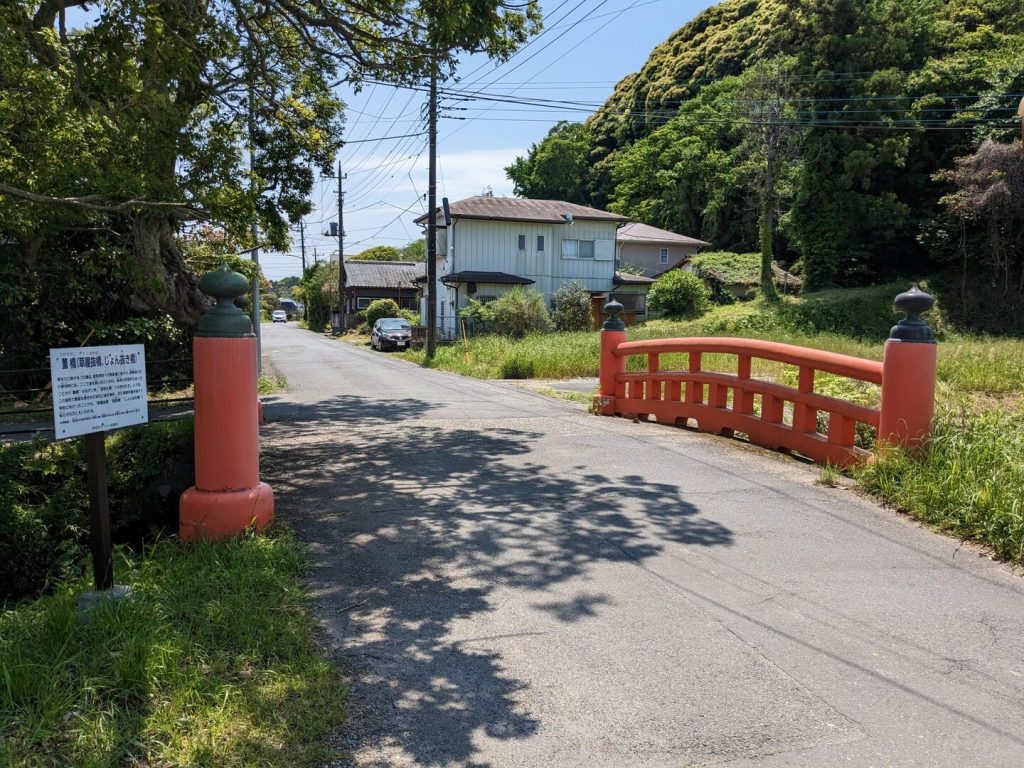 成田線の線路を越えると、すぐ「董橋(ただすばし)」がある。かつて衛兵見張所があって、通行者を糺(ただ)したところからこの名がついたとのこと。別称は「草履抜(じょん抜き)橋」で、参拝者はこの川で身を清め、衣と草履を履き替えて香取神宮に向かったという。さらに進むと「神道山古墳」の入り口に出た。5 ~ 6 世紀の前方後円墳 1 基、円墳 6 基が残っている。…と、ここまではいろいろ見所があり、飽きないのだが、ここからが遠かった。