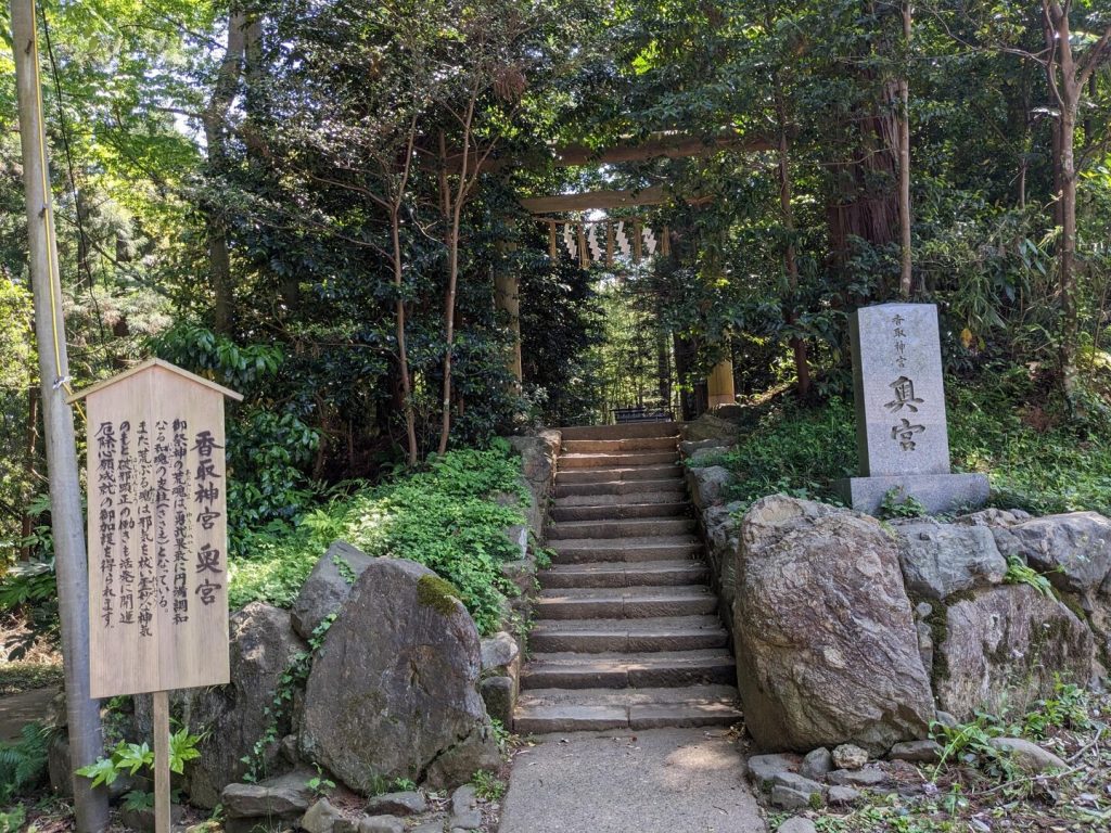 さらにその先、旧参道の中程に「奥宮」があり、「経津主大神」の荒魂を祀っている。