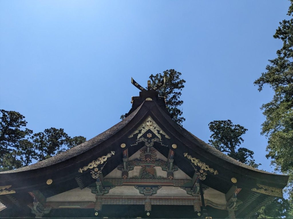 とても優美だ。「楼門」と同じく、元禄 13 年 徳川幕府の手によって造営された。慶長年間の造営で用いた桃山様式を元禄の造営時にも取り入れているとのこと。「本殿の様式は正面柱間三間の流造に後庇を加えた両流造り、現在屋根は桧皮葺ですが、もとは柿葺でした。規模も大きく、また建築様式も近世前期の正統的な手法を用いており、全国的に見てもこの時期の神社建築を代表する建物です。(昭和 52 年重文指定)」と香取神宮の HP に説明がある。屋根が美しく流れる様に反っていて(流造)、壮麗な中にしなやかな美しさを感じる。