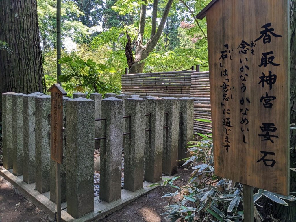 「総門」の前の道を西に進むと、「要石」に出る。地震を抑えるため、地中に深く石棒を差し込み、大ナマズの頭尾を刺し通したという。「鹿島神宮」にもあり、香取はは凸形、鹿島は凹形で、地上に一部を現し、深さ幾十尺と伝えられている。