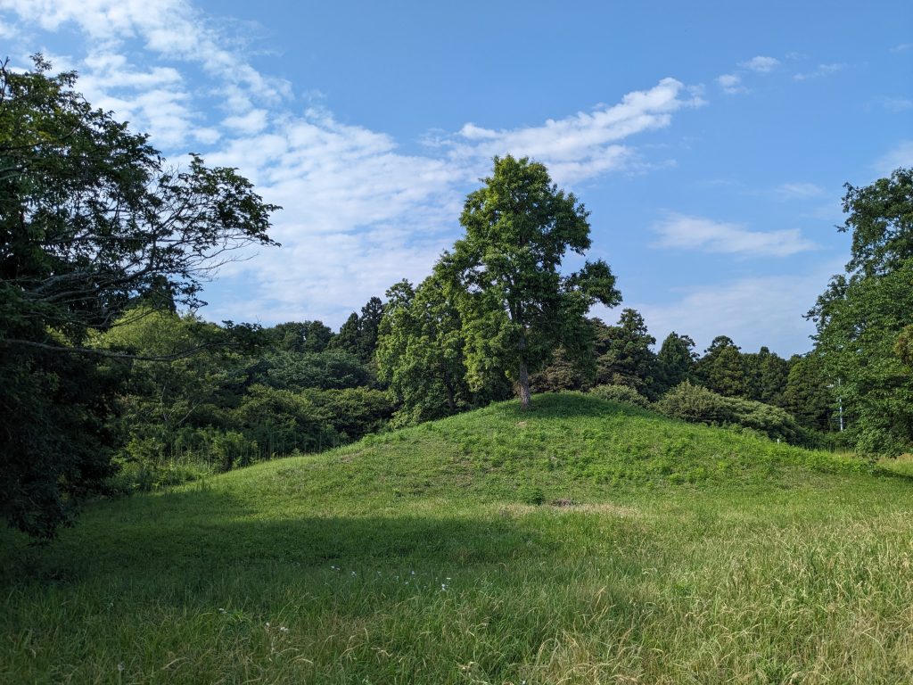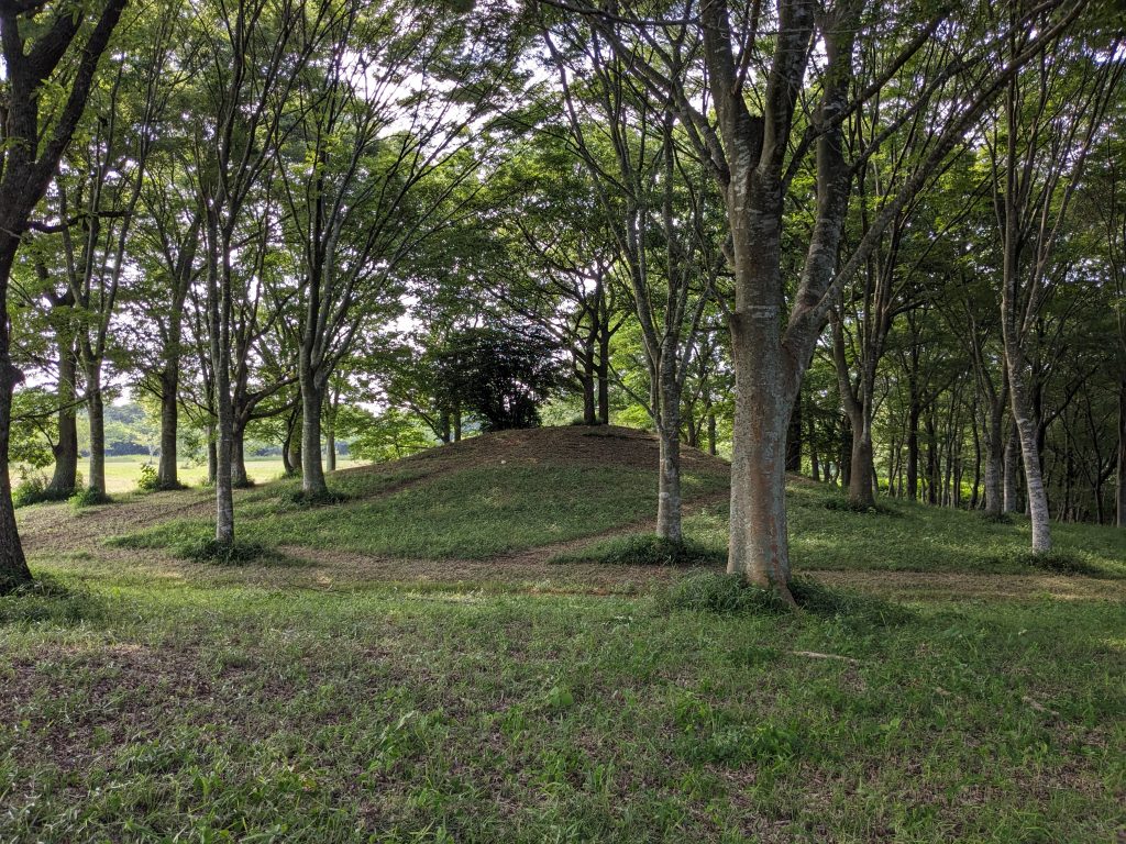 西部古墳群は「茨城県水郷県民の森」に隣接しているので、その第 3 駐車場に車を止めた。駐車場わきの小道を東に進むと、すぐに視界に古墳が飛び込んでくる。