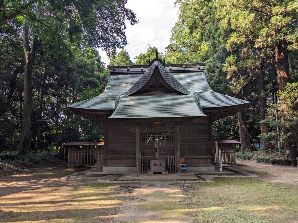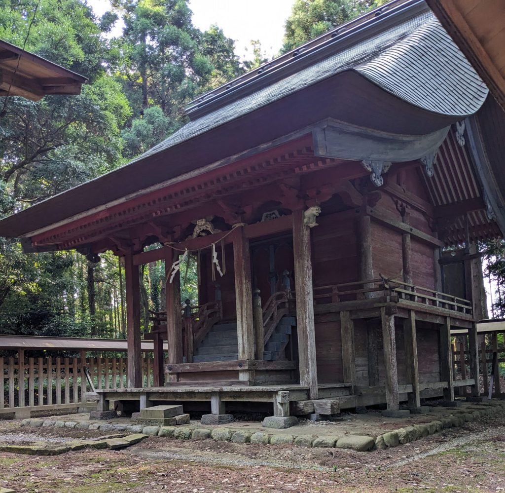 この本殿は天正十八年(1590 年)の建立と伝えられる三間社流れ造り茅葺きで間口約 6 m、奥行き約 7 m、前軒高さ約 3.3 m、裏軒高さ約 4 m と地方社殿としては大きく荘厳にして、当地方における最古社でその時代の特徴を良く示しており、貴重な存在である。