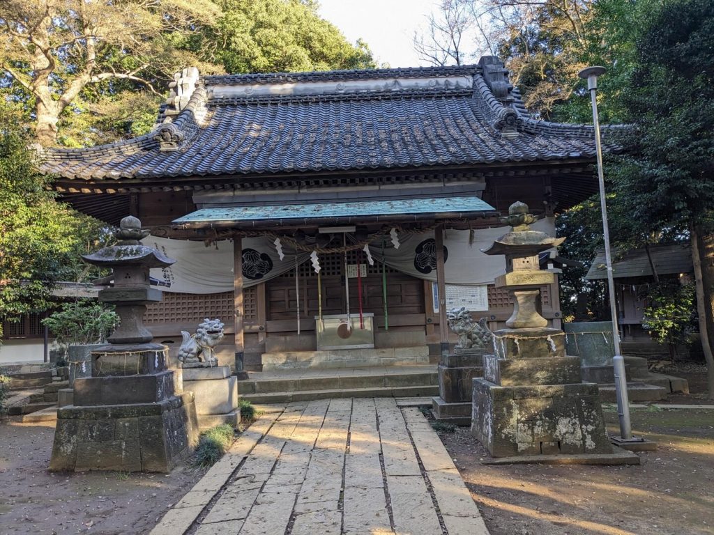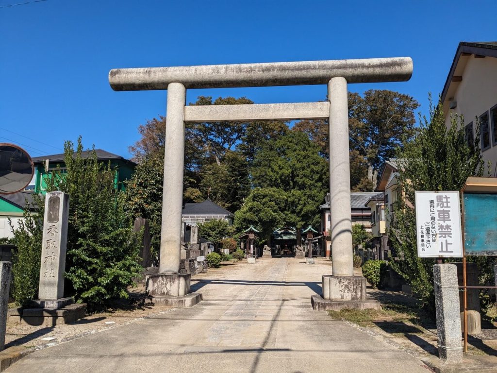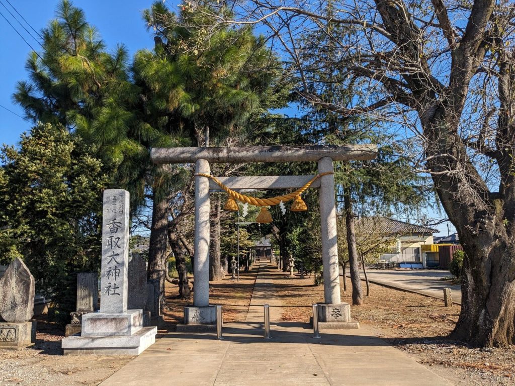 「野田市郷土博物館」から「キッコーマン野田本社」の前を通り、「歴史館」のある「上花輪」へ向かう。途中「上花輪香取神社」に立ち寄った。この地区の鎮守で、室町時代の天文年間に創建されたと伝えられ、享保 12 年(1727)に氏子の請により正一位を賜ったという。