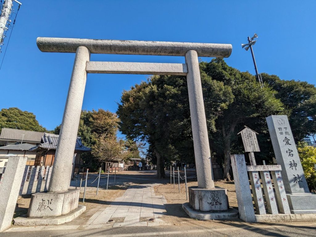 「清水公園」を後に「愛宕」に向かう。駅のそばに「愛宕神社」がある。「愛宕神社」は全国に 900 社もあり、総本山は京都の山城国と丹波国の境界「愛宕山」の山頂にある「愛宕神社」であり、大宝年間(701~704)に役小角と泰澄によって神廟が建てられたことに始まる。野田の「愛宕神社」は総本山の祭神である火の神「迦具土(カグツチ)命」を勧請したものであり、創建は延長元年(923 年)となっている。「迦具土命」はイザナギ・イザナミの最後の子だが、「火の神」であることからイザナミは女陰を焼かれてこの世を去る。怒ったイザナギがその首をはねると、血から「鹿島神宮」の祭神である「タケミカヅチ」などの多くの神が生まれたという。「野田郷開墾後、郷内に勢力を伸ばし始めた土豪(農兵)等の間に争いなどがあり、山火事ばかりでなく兵火の心配も多く故に火伏の神を祀ったと伝えられています」と説明板に書かれている。