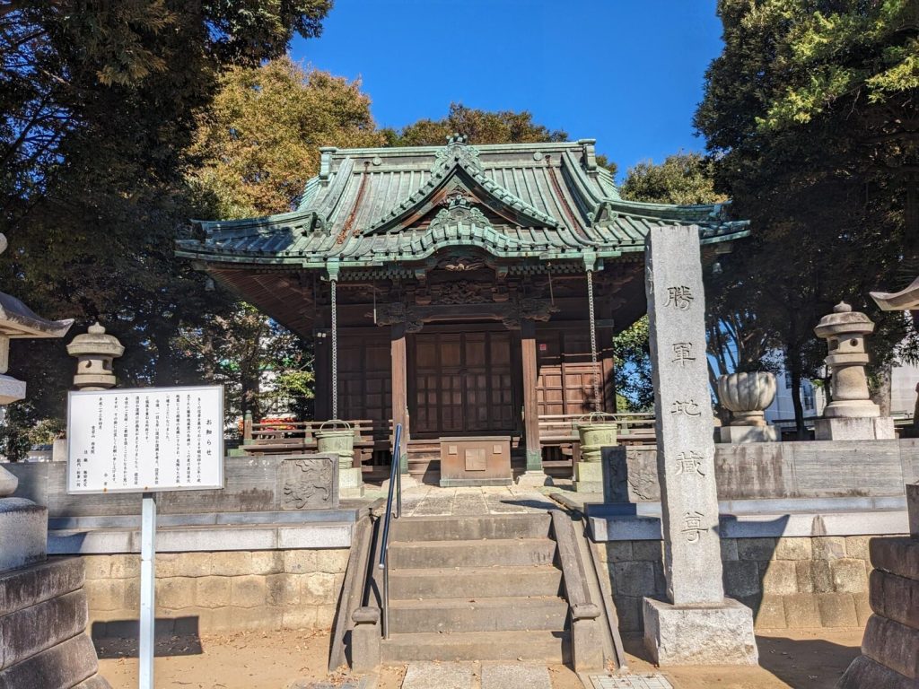 神社の北側には「勝軍地蔵尊(しょうぐんじぞうそん)」があった。「坂上田村麻呂」が東征のとき、戦勝を祈って作ったと伝えられる地蔵菩薩だそうだ。