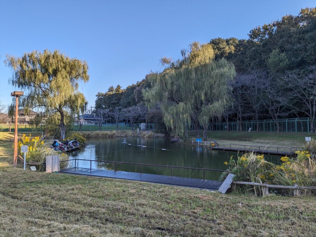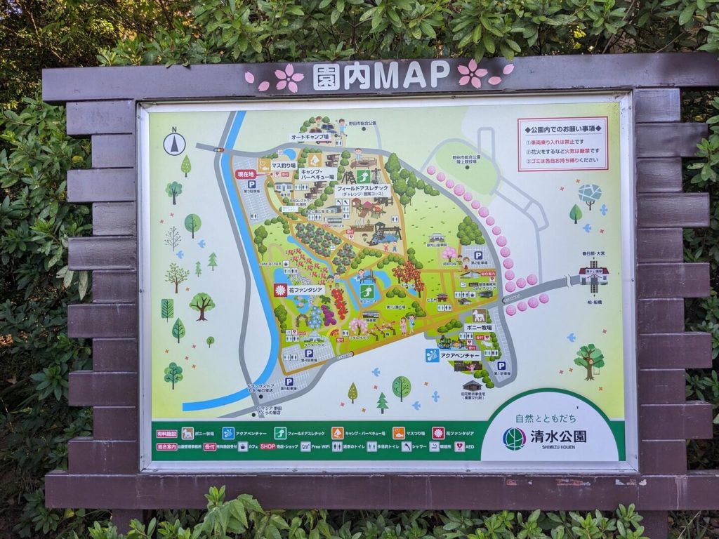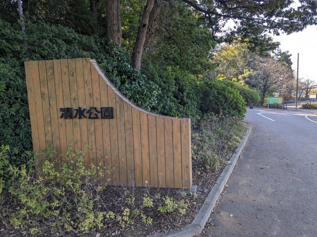 神社から約 30 分、「清水公園」の入り口に着いた。 28 万平方メートルの敷地を有する民営の広い自然公園だ。]醤油醸造業の「柏家」五代目当主「茂木柏衛翁」が明治 27 年(1894 年)に「金乘院」から土地を借り受けて遊園地(第 1 公園)を建設したのが始まりで、さらに昭和 4 年に自然公園として大幅な拡張が行われたとのこと。緑豊かな敷地にフィールドアスレチックやキャンプ場、ポニー牧場などがある。