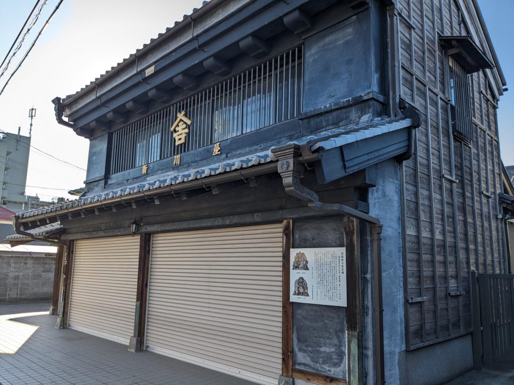 - 新川屋(写真 36):呉服店。建物は明治 23 年(1890年)のもの。1 階が店舗で 2 階が住居の「見世蔵」形式。