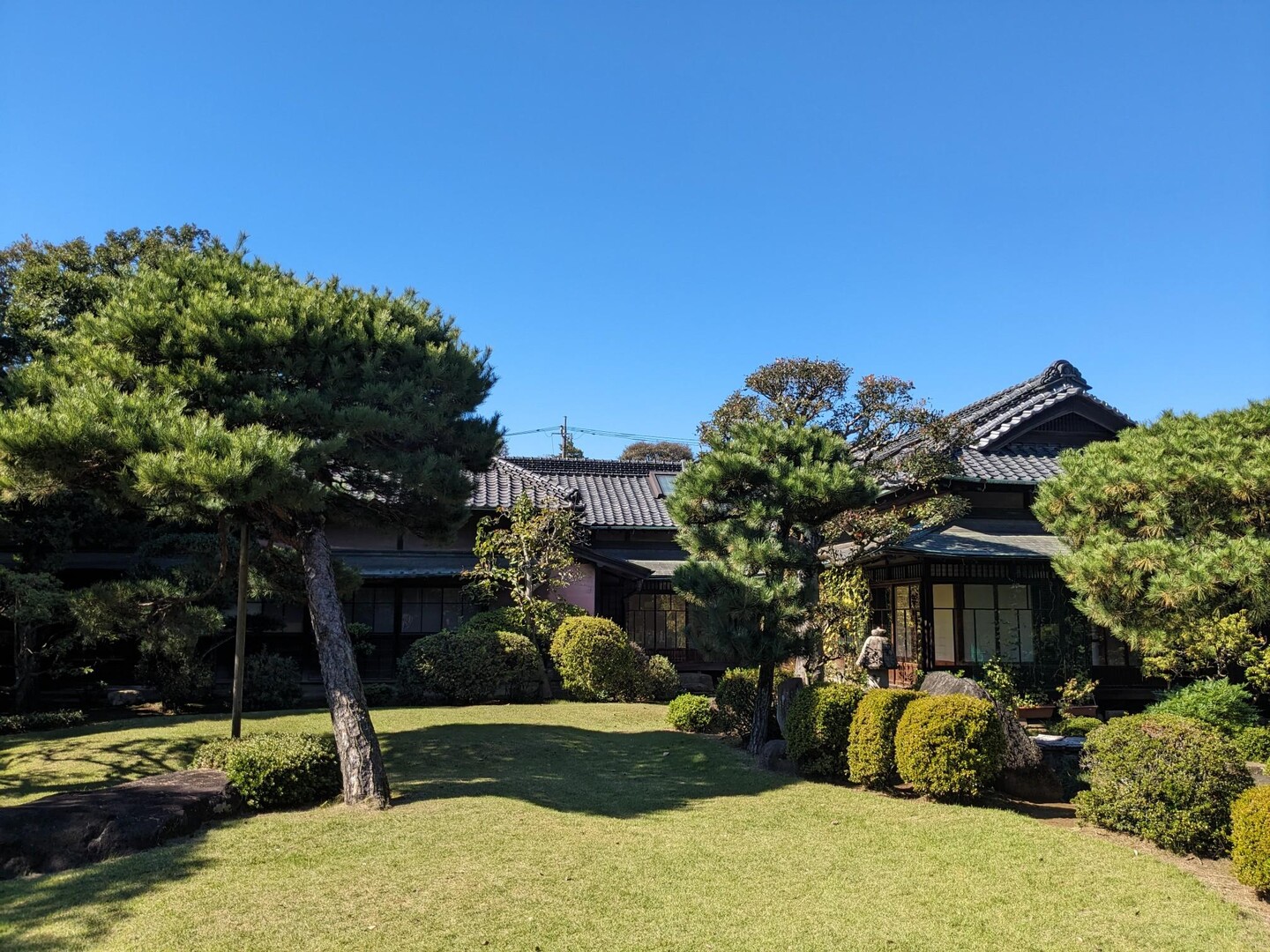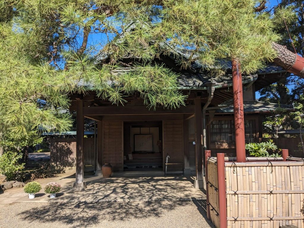 1500 円を支払い中に入り、屋敷の内覧(ガイド付き)や庭を見学した。ちょうど、「會田雄亮の世界 陶の可能性への挑戦」という特別展を開催中で、屋敷の各所に會田雄亮さんの陶器が置かれ、歴史ある部屋によくマッチしていた。門長屋は 1766 年、書院は 1806 年以前の築だそうである。「高梨家」が最初に野田での醤油製造を始めたこと、物資運搬のために鉄道の線路を敷設し、それが東武野田線(現、東武アーバンパークライン)となったという話を聞いた。帰って調べると、「千葉県は、東葛飾郡野田町(現・野田市)の醤油醸造業者から舟運に頼るだけの交通の不便さを訴えられたため、1910年(明治 43 年)8 月 3 日に野田町 – 東葛飾郡千代田村(現・柏市)間他 1 線[について軽便鉄道敷設免許申請を鉄道省に提出した。建設費は県債を募集して充てることとし、醸造組合は 20 万円でその県債を引き受けた。当初、軌間は軍用軽便鉄道と同規格の 600 mm を予定していたが、野田醤油醸造組合では鉄道院線(現・JR 東日本線)と同軌間でなければ常磐線柏駅で貨車の直接乗り入れができず不便である点を主張し、その結果、1,067 mm に変更して着工することになった。同年 8 月 31 日に免許が下りると同時期に工事が着工され、1911年(明治 44 年)5 月 9 日千葉県営鉄道野田線として、 野田町駅(現・野田市駅)- 柏駅間 9 マイル 10 チェーン (14.7 km) が開業した。(Wikipedea)」とのことである。明治の末になって、交通の中心は船から鉄道に代わろうとしていたのである。