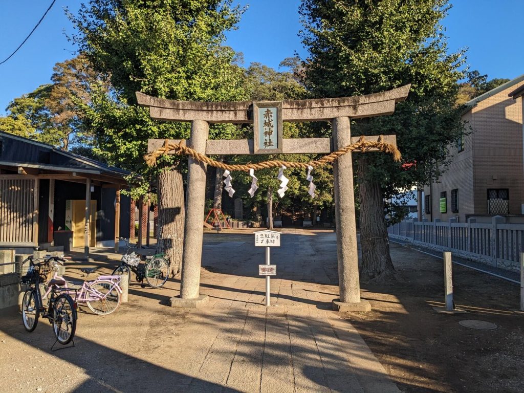 「天晴通り」を進むとすぐ「赤城神社」の鳥居の前に出る。鳥居の先にはお椀を伏せたような小山があり、階段が上に伸びている。これが「赤城山」である。説明板によると海抜は 15 m。「赤城山」というと群馬県だが、その「赤城山」が噴火し、土塊がここに流れ着いたという伝説があるのだそうだ。「山」が「流れ」てきたので、「流山」。また、流れてきたのは「山」ではなく「赤城山のお札」だとする説もあるとのこと。いずれにしても「流山」の名前の起源がこの「赤城山」だという。そして、この山上に「赤城神社」がある。鎌倉時代の創建といわれる旧郷社で、元和 6 年(1620)再建。祭神は「大己貴命(オオナムチノミコト)」つまり「大国主命」である。現在の本殿は寛政元年(1789年)に建立されたもので、「建物上段は彩色の施された彫刻で埋め尽くされており、下段は、欅の彫りを見せるために彩色を施さず、素本造りとしています」と説明板にあるのだが、外から窺うことができなかった。