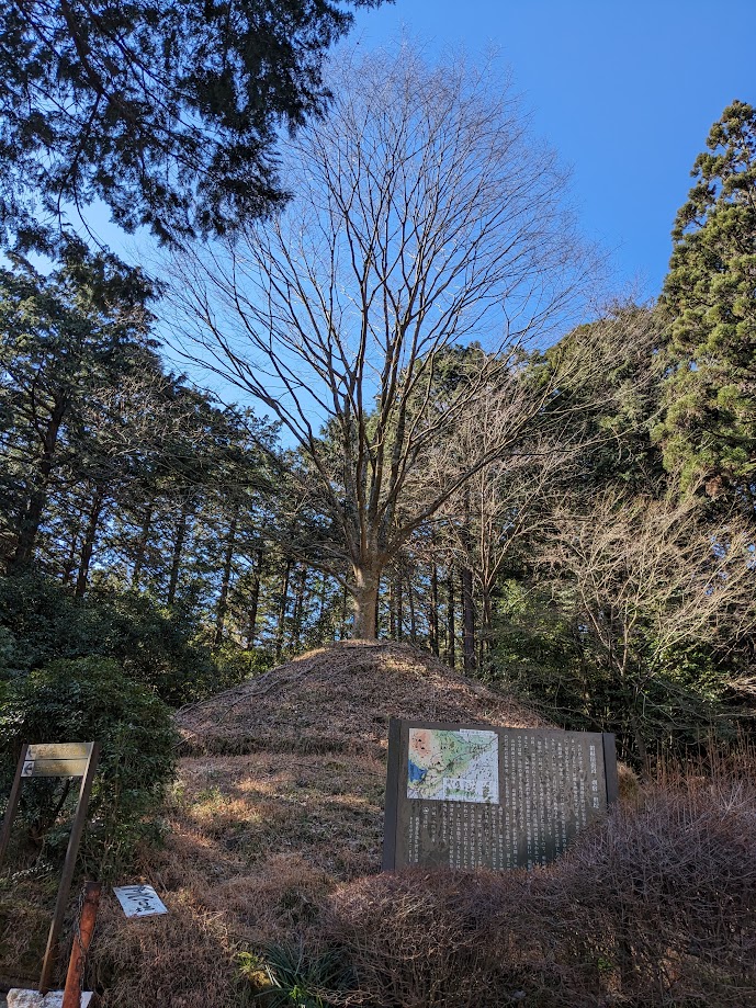 なるほど! 「橿木坂 登り五町許(ばかり)」の石碑があり、その横に階段がついている。この先が「橿木坂」なのだ。果たして「どんぐりほどの涙」がこぼれるか?