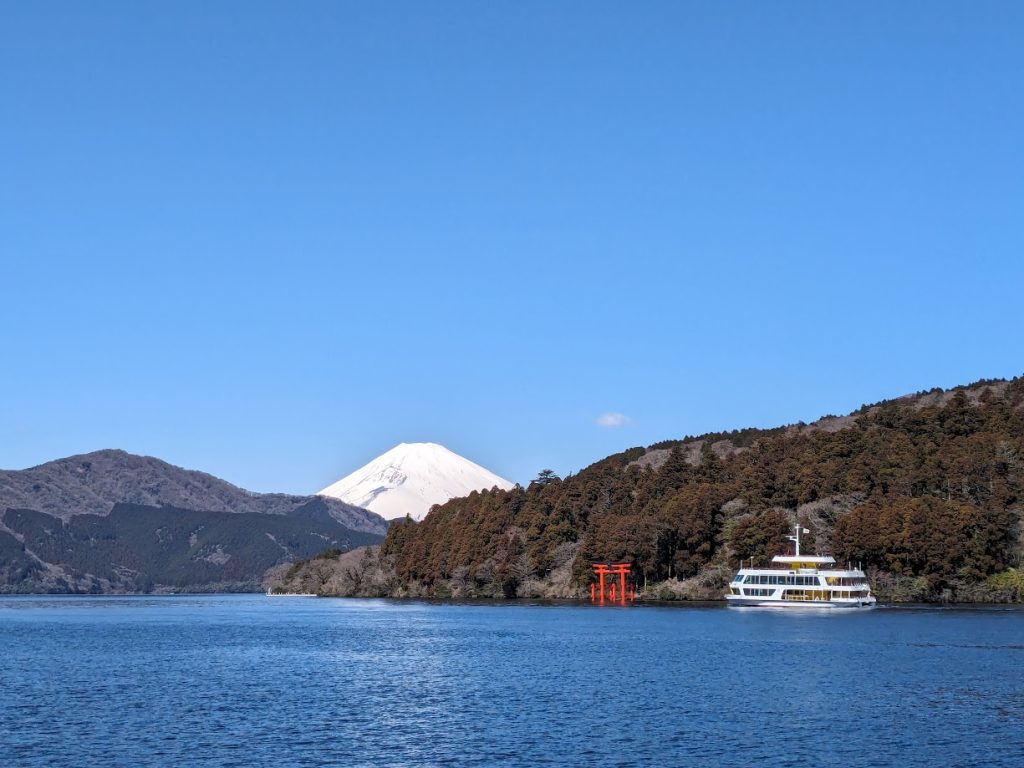 写真21 芦ノ湖、箱根神社鳥居、富士山、遊覧船 SORAKAZE