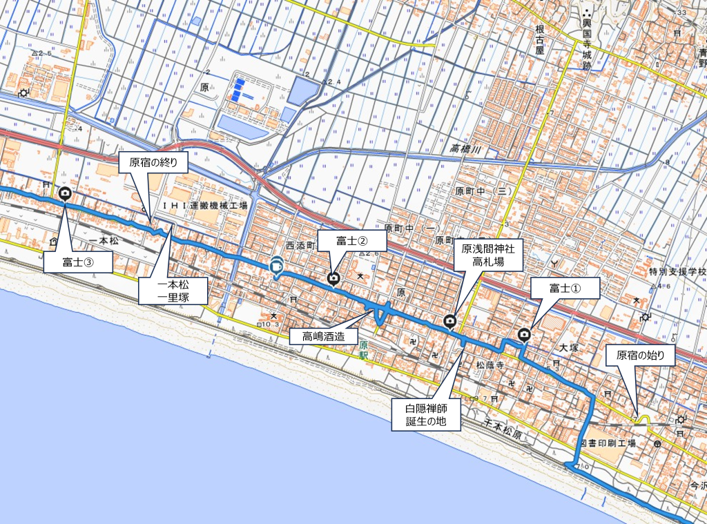 本陣が一つ、脇本陣一つの小さな宿である。『東海道名所図会』では、「委しくは浮島ヶ原なるべし。北に富士沼、南に大洋漫々たり。その中の曠原なればこの名あり」と書かれている。この「浮島ヶ原」とは何か? 以下は「沼津市商工会」の「原の歴史・地域概要」からの抜粋である。