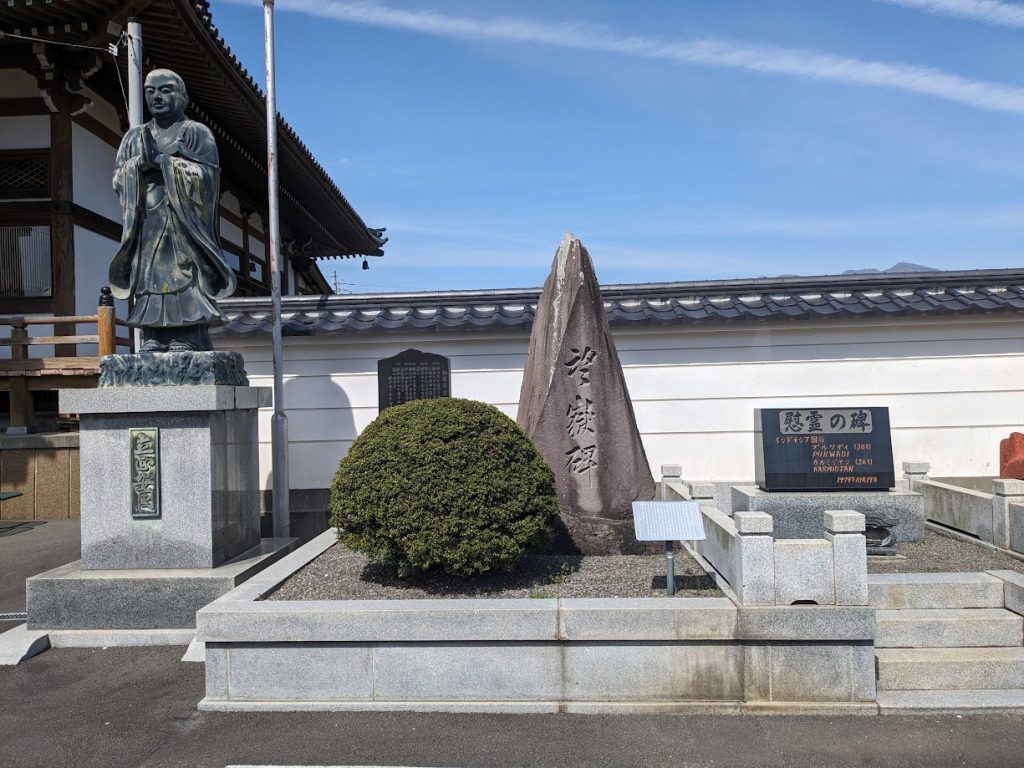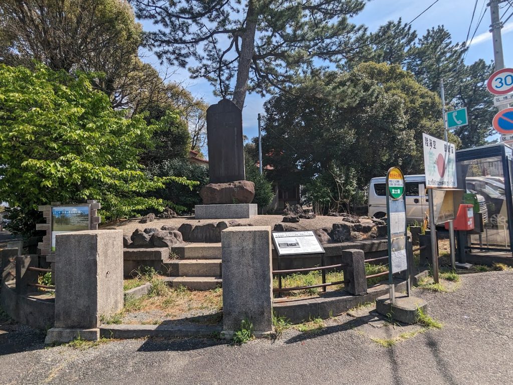 このあと「女忍者軍団」とは抜きつ抜かれつで進む。同じ一本道である。見るところも同じである。「柏原」という「間宿(あいのしゅく)」に入る。「立圓寺」に「望嶽の碑」があるというので立ち寄ってみる。これは文化五年(1808)に尾張藩藩医の柴田景浩が建立したもので、ここから眺望する「富士」の素晴らしさを讃えたもの。