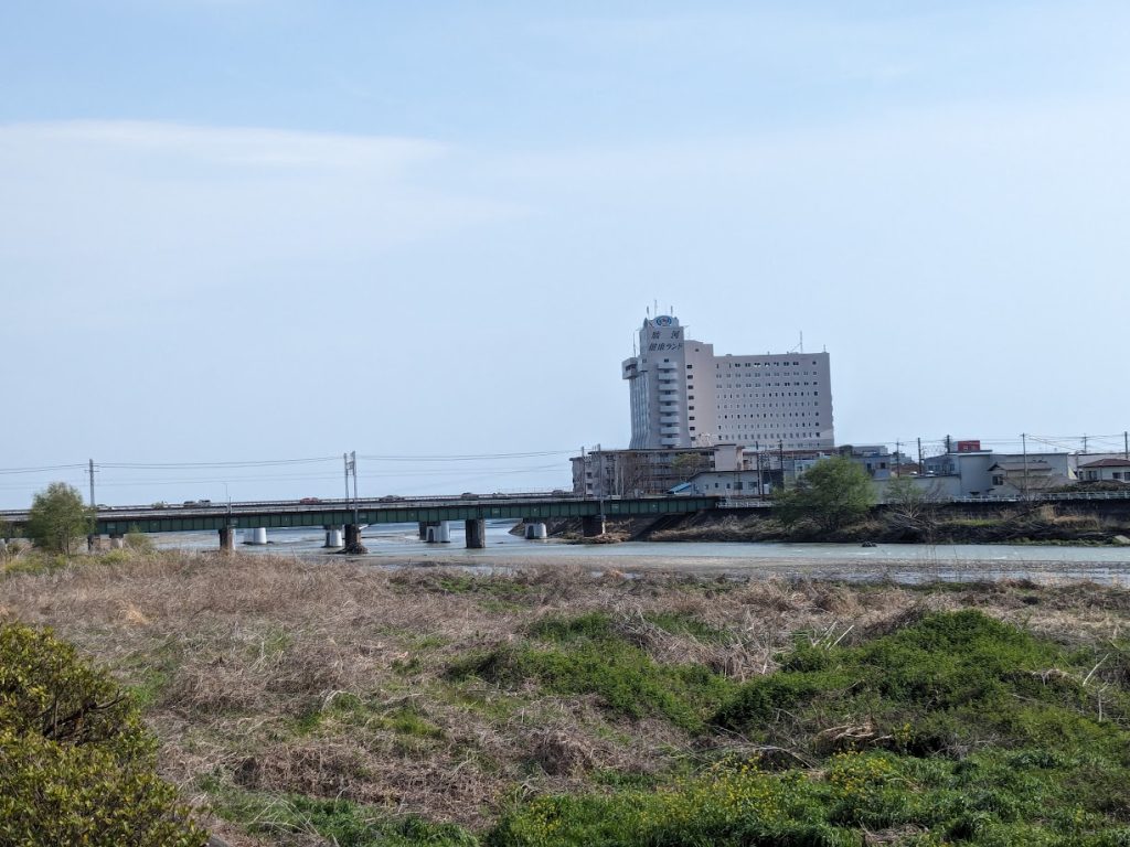 「おきつ川通り」で左折。「東名高速」を潜り、「興津川」に沿って南下すると川の向こうに建物が見える。これが今日の宿「クア・アンド・ホテル 駿河健康ランド」だ。「興津川」にかかる「浦安橋」を渡ったところで第二日を終了。「吉原宿」からの歩行距離は 24.6 キロ、時間は 7 時間 41 分だった。