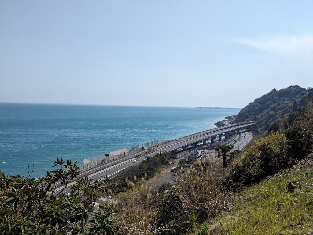 さあ、ここからハイキング道に入ろうと思ったのだが、問題が起こった。通行止めになっているのだ。「令和 4 年 6 月に薩埵峠ハイキングコースにて、崩落が確認されました。崩落箇所以外にも危険箇所が確認されたため当面の間ハイキングコースの一部区間を通行止めとします」との無慈悲な表示。仕方がないので、ハイキングコースをあきらめ自動車道を歩いて「興津」に向かう。もし通行止めでなければ次の様な光景を見ることができたはずだ。