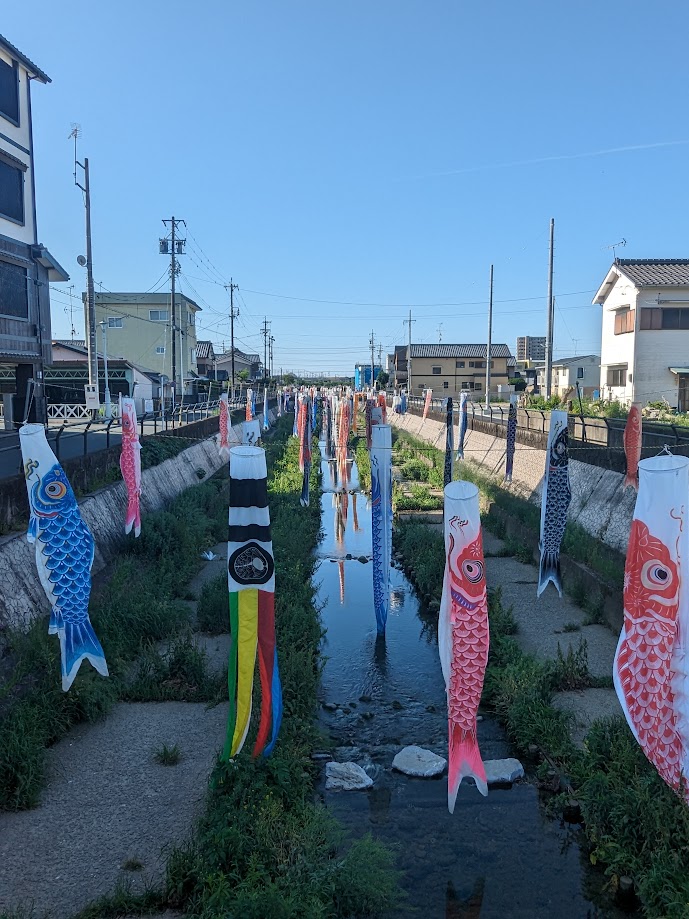 宿場の中央を流れる「中川」に鯉のぼりが泳いでいた。五月だ!