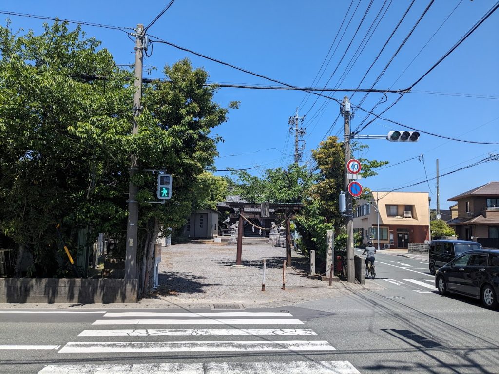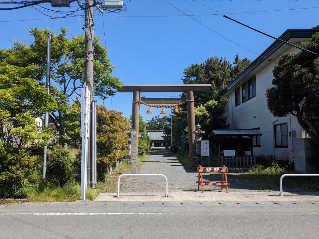 この神社の裏手の地域の名前は「今の浦」である。「見付宿」の南側だ。『東海道名所図会』に「今はあせて〔水深が浅くなる〕沼野となる」と書かれているから江戸時代は沼地、より古くは海だった土地だ。「見附」の語源の一つ「水付き」はここから来ている。