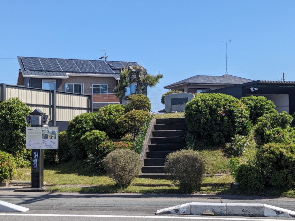 川を渡り、少し南に戻って旧街道に入る。入口のところで面白いものを発見。「舟橋 木橋の跡」という説明板が立っていた。江戸時代は天竜川には橋はなく渡船渡しであったが、明治元年に「明治天皇」の東幸があり、それに合わせて二日間だけ仮設の橋が設置されたという。説明板によれば、流れのあるところは舟を並べた船橋、洲の部分は木橋を用いたらしい。ここがその跡なのだ。