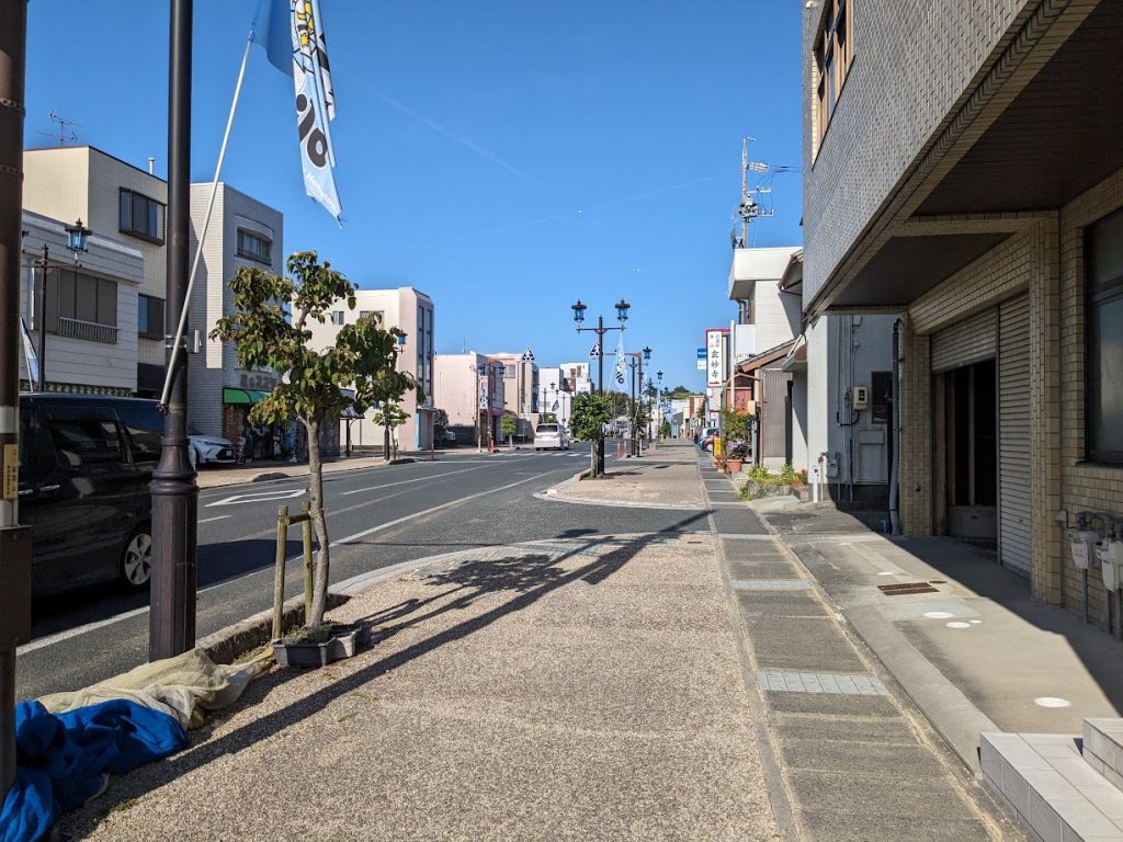 神社から街道に戻り、さらに南下。「磐田駅」のある「中泉」に入っていく。私はコーヒーを飲むところを探しているが、なかなか適当な店がない。コンビニはあったが、イートインできそうにない。一時期、イートインできる店が多かったが、コロナ以降ドンドン減ってしまった。ファミマも廃止の方向だそうだ。これは「歩き旅」をする者にとっては大きな痛手だ。Google Map を調べると「カフェ喜楽」というのがある。駅の西側、「旧東海道」沿いである。