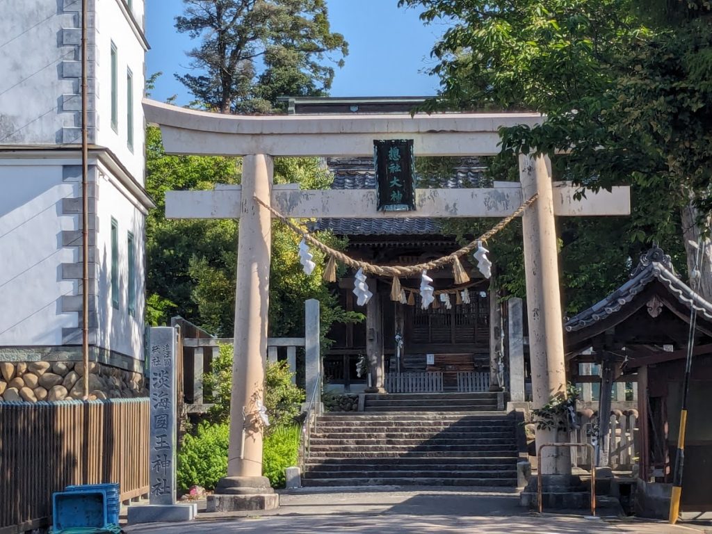 右隣が「大国主」を祀る「遠江國総社」の「淡海國玉神社」。「淡海(おうみ)」とは淡水の湖のことで、ここでは「浜名湖」のこと(現在は海に通じているが、古代は淡水湖であった)。京から遠いので「遠つ淡海」から「遠江(とうとうみ)」に変化した。一方、「琵琶湖」は京から近いので「近つ淡海」から「近江(おうみ)」へと変化したらしい。
