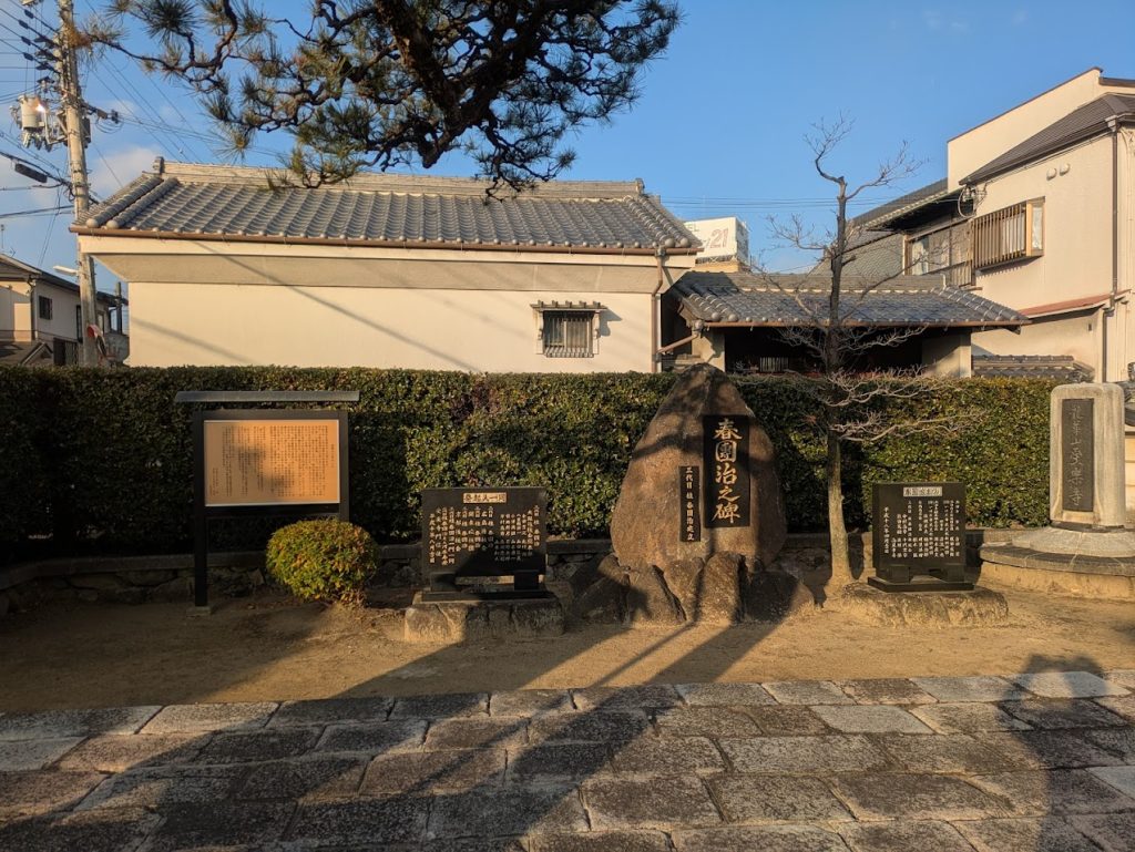 20 分ほど歩き「中国自動車道」の高架を潜った先に「北今在家公園」があり、その先の「受楽寺」の前に「桂春団治の碑」があった。「三代目春団治」が紫綬褒章を受章したときに、初代・二代目へのご恩報謝の気持ちを形に表そうと「春団治の碑」の建立を発願、後援者と相談したところ、「受楽寺」の住職から境内地を提供されることになったらしい。「池田」といえば「池田の猪買い」の噺の舞台、「二代目春団治」が得意とする演目だった。その縁もあるのだろう。