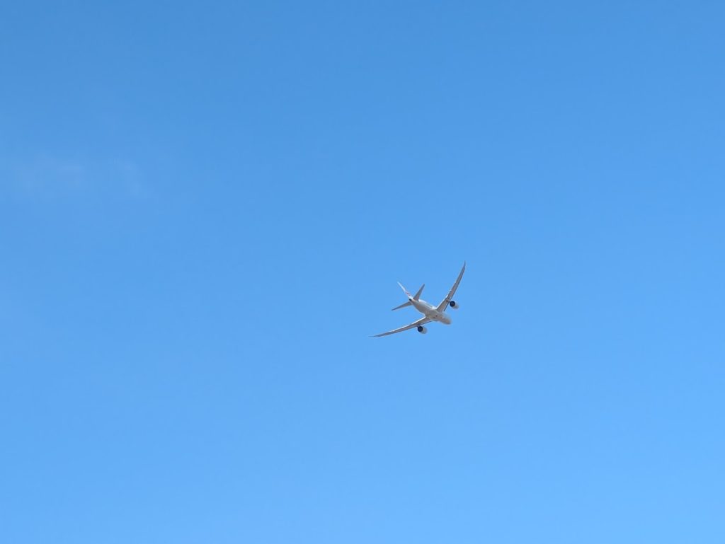 橋を渡っていると、頭上を飛行機が通り過ぎた。ちょうど隣が「伊丹空港」なのだ。