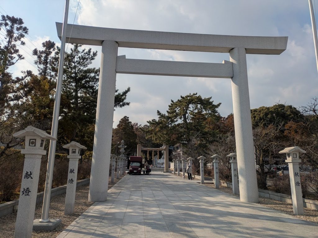 鳥居の先に「官弊大社」と書かれた「注連柱(しめばしら)」。