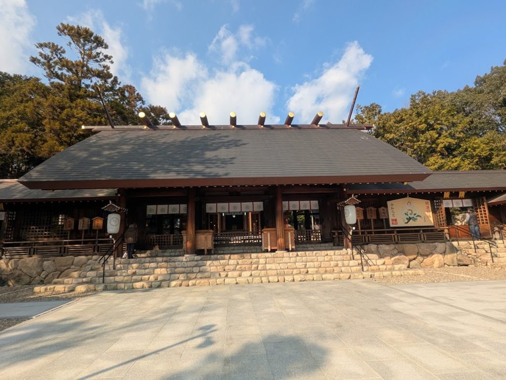 主祭神は「天照大神荒魂」、つまり「アマテラスの荒魂」、別名が「撞賢木厳之御魂天疎向津媛命(ツキサカキツノミタマアマサカルムカイツヒメノミコト)」。脇殿神に「住吉大神」「八幡大神」「武御名方大神」「高皇産霊神」の四柱。