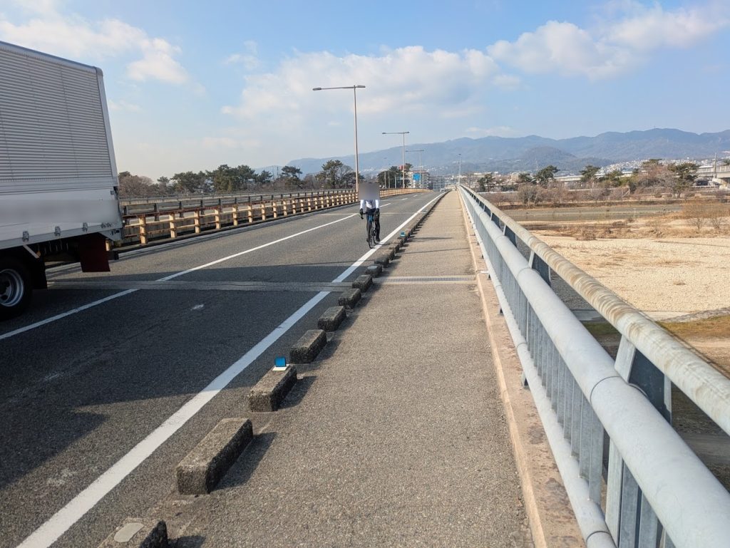 その先、「箕面川」を越えて「国道 171 号線」に移るのだが、まっすぐ川を渡る歩道橋がある。ところが、「通行止め」になっているではないか! 結局、二等辺三角形の二つの斜辺を大回りすることとなった。