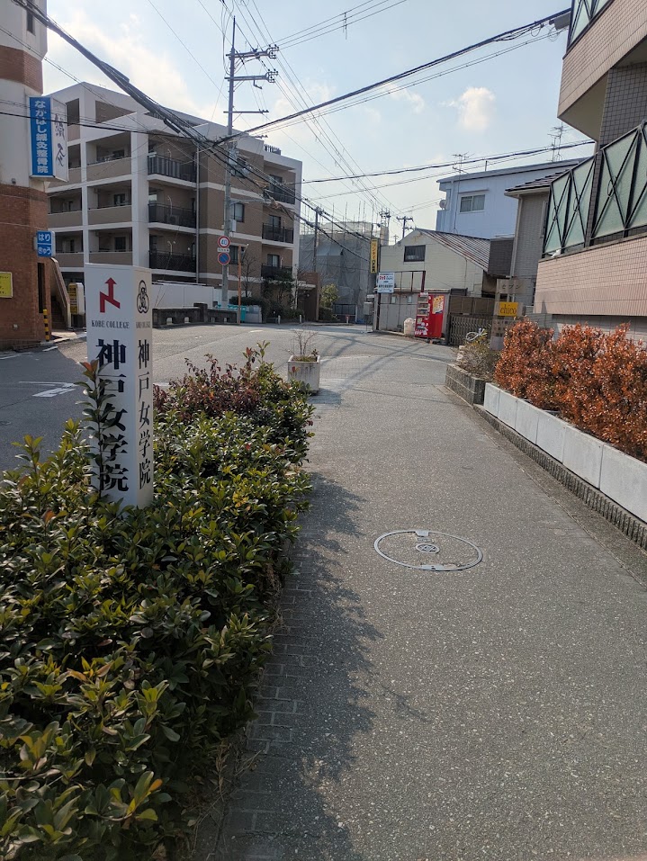 来た道を駅まで戻り、「西国街道歩き」を再開する。進んでいくと「神戸女学院」の道標が。ここは「神戸女学院」の通学路に当たるのだ。名門のお嬢様学校。それらしき女の子が歩いており、「歩き旅」のオジさん(オジイサン?)がついていく。