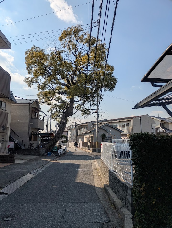 その先に「阪急門戸厄神(もんどやくじん)駅」。時刻はちょうど 12 時、お昼にしようと店を探す。踏切を越えたところにあるカフェでパスタランチをいただいた。今日は「西宮」泊まりなので、まだだいぶ時間がある。「門戸厄神」は行ったことがないので、立ち寄ってみることにした。街道は南西方向だが、北へ進む。
